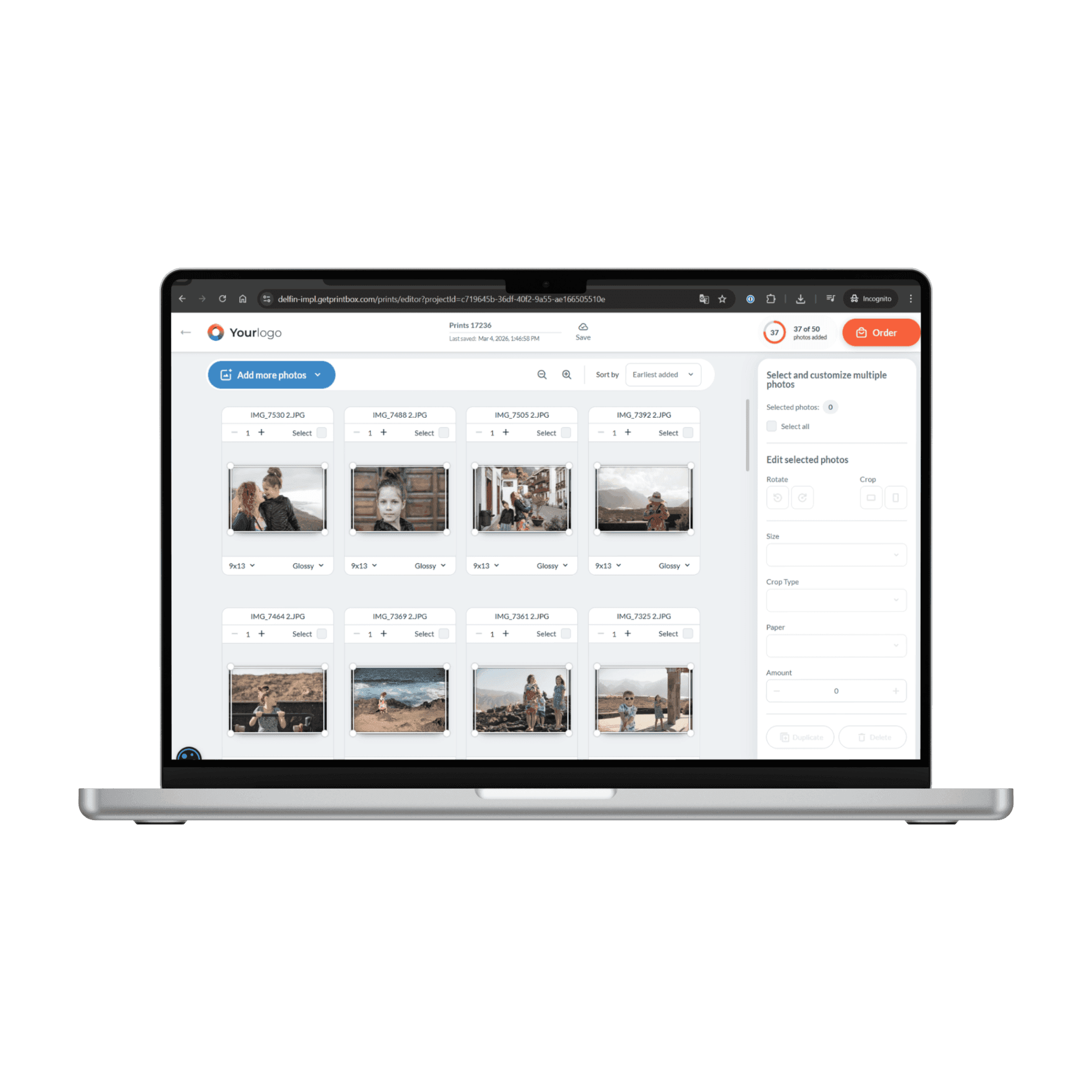 Let customers bulk-select, crop, and order hundreds of photos from their phones — built for conversion and high-volume orders.