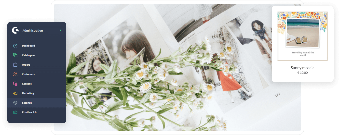 Printbox comes with an e-commerce solution included. With intuitive ecommerce and the robust admin panel, you get a perfect set to effectively sell photo products online.