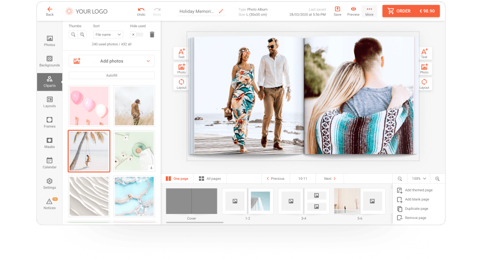 Users can enter the editor straight from the product list. All of the changes he or she does in one product are saved when browsing other designs.