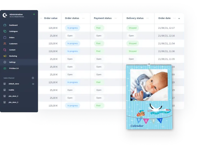 The tracking system not only helps you with the finishing process (for example to pair the cover with the block of the photo book), but it gives you the possibility to automatically send back the information regarding the status of the product. It is a great feature for you and your customers because they can effortlessly track what's happening with their order.