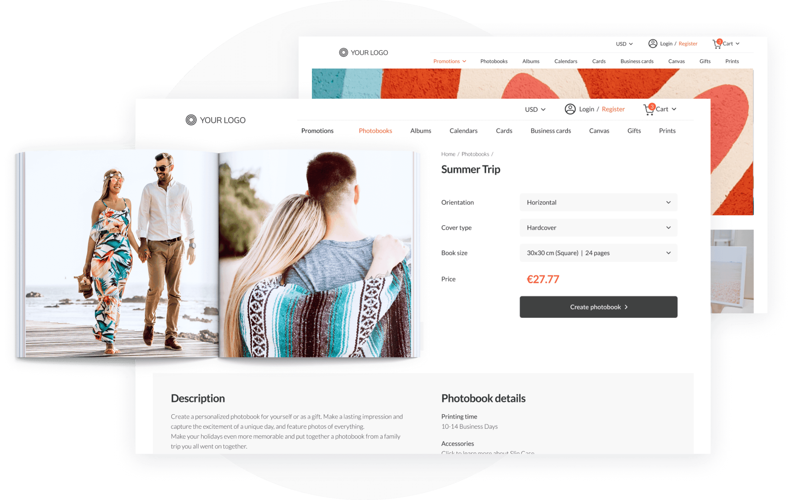 Photo books with kid’s first photoshoot in a baby store, a beautiful album from the ceremony in a wedding store, cards and gifts with pictures in a gifts e-shop - Printbox has all occasions and all product types covered.